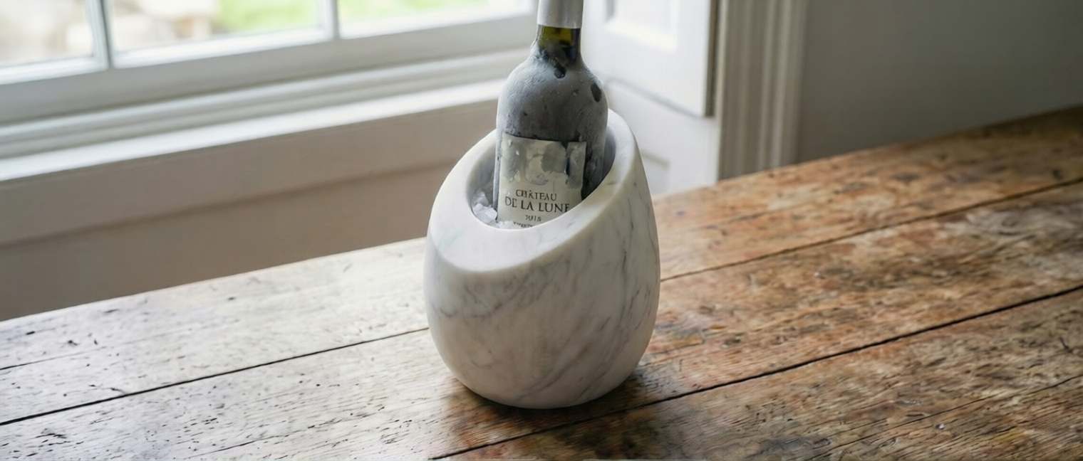 Our marble isn’t just beautiful it’s functional. Sourced from the finest quarries, our stone possesses natural thermal inertia, keeping your vintage at the perfect temperature for hours without the need for messy ice.